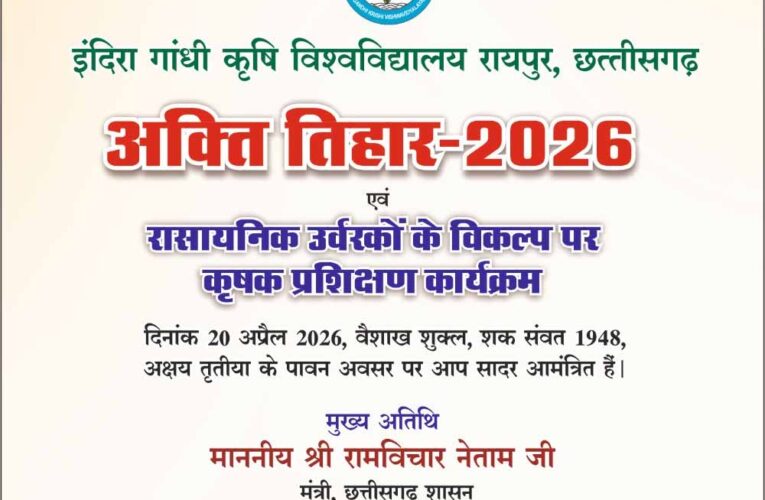 कृषि विश्वविद्यालय में 20 अप्रैल को मनाया जाएगा अक्ती तिहार, कृषि मंत्री नेताम करेंगे मिट्टी और बीजों की पूजा