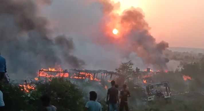 गुना में पटाखा दुकान में लगी भीषण आग, 2 दर्जन से अधिक दुकानें जाली