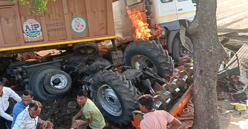 महू-नीमच हाईवे पर रतलाम में ट्रैक्टर को चपेट में लेकर ट्राला झोपड़ी में घुसा, चालक की मौत