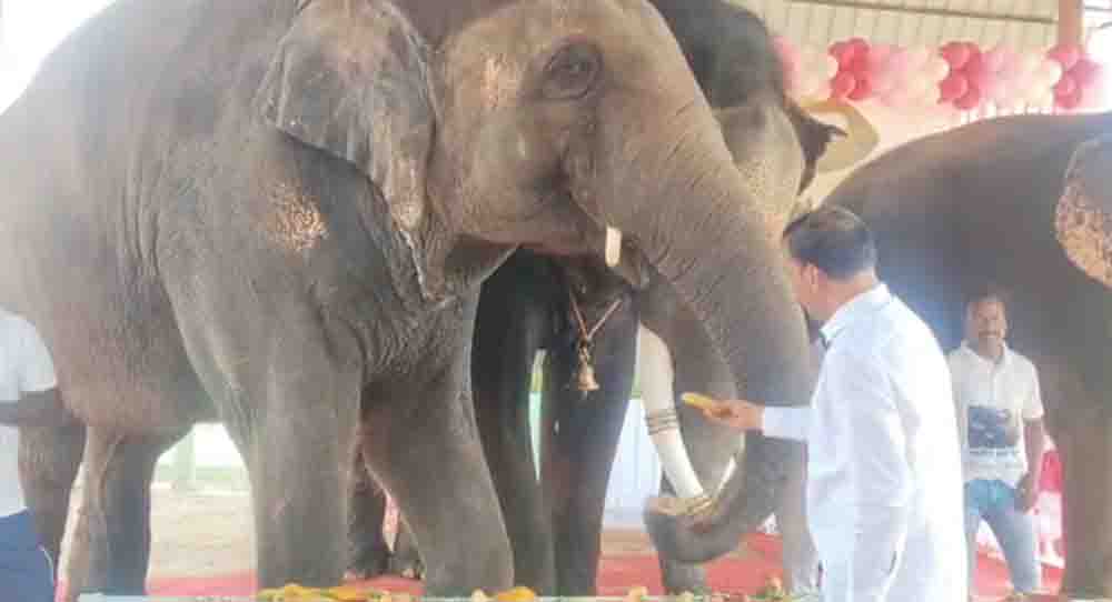 हाथियों ने फलों से बने केक काटे