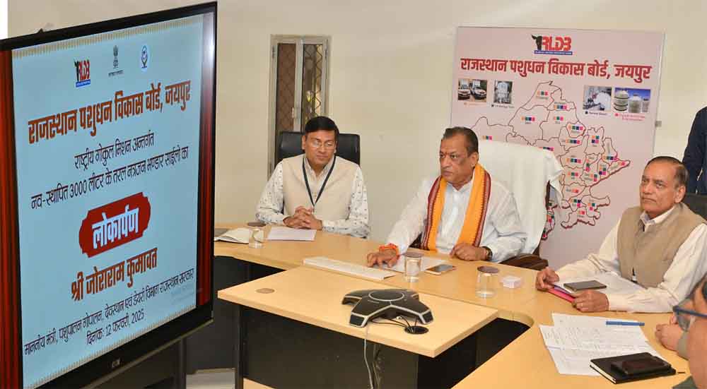 पशुपालन, गोपालन और डेयरी मंत्री श्री जोराराम कुमावत ने बुधवार को राजस्थान पशुधन विकास बोर्ड के सभागार में राष्ट्रीय गोकुल मिशन के अंतर्गत 13 जिलों में तरल नत्रजन भंडारण हेतु 3000 लीटर के साइलो का वर्चुअल लोकार्पण किया। उन्होंने बताया कि तरल नत्रजन पशु नस्ल सुधार के लिए किए जाने वाले कृत्रिम गर्भाधान में काम आता है। तरल नत्रजन की भण्डारण व्यवस्था को सुदृढ़ बनाए रखने के लिए राज्य के 16 जिलों में 3- 3 हजार लीटर क्षमता के वर्टिकल साइलो पूर्व में स्थापित हो चुके हैं। इस तरह अब राज्य के 29 जिलों में वर्टिकल साइलो की स्थापना हो जाने से तरल नत्रजन भंडारण की कुल क्षमता 93 हजार लीटर हो गई है। जयपुर और उदयपुर के साइलो की क्षमता 6-6 हजार लीटर की है।