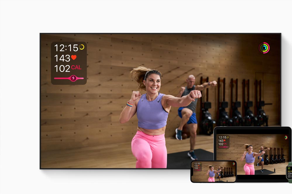 ऐपल फिटनेस प्लस की मदद से जब एक्सरसाइज करेंगो तो हार्टबीट, कैलोरी बर्न और अन्य डिटेल्स स्क्रीन पर नजर आती है.