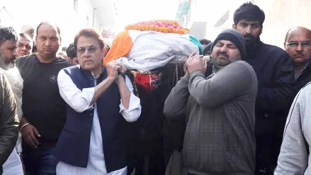 शहीद इंस्पेक्टर की शव यात्रा में शामिल हुए सांसद अरुण गोविल.