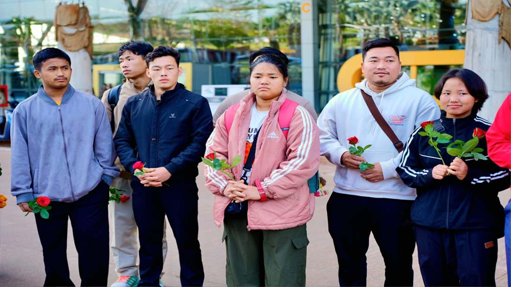अरुणाचल के वेटलिफ्टरों का विमानतल पर रंगारंग स्वागत