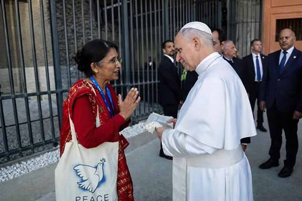सृजन को सु अनुराधा शंकर से.नि. आईपीएस जो कि गांधी पीस फाउंडेशन से संबद्ध हैं के द्वारा वेटिकन सिटी के धर्मगुरू पोप तथा अन्य को रोम के एक कार्यक्रम में 26 अक्टूबर 2025 को भेंट किया गया। इस कल्पना को साकार करने में नर्मदापुरम की महिला उद्यमी रत्नम और राकेश ने अपना योगदान दिया है।