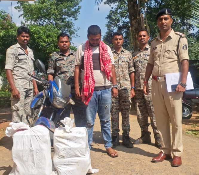 आरोपी से पूछताछ करने पर अपना नाम पराग मण्डल पिता परिमल मण्डल उम्र 27 वर्ष निवासी नाईकगुड़ा यूवी. 11 उमरकोट थाना उमरकोट जिला नवरंगपुर उड़ीसा का रहने वाला बताया। जिनके कब्जे से कुल 39.370 किलो गांजा एवं एक बिना नम्बर मोटर सायकल जप्त कर एनडीपीएस की धारा 20 के तहतू कार्यवाही की जाकर आरोपी को गिरफ्तार किया गया है।