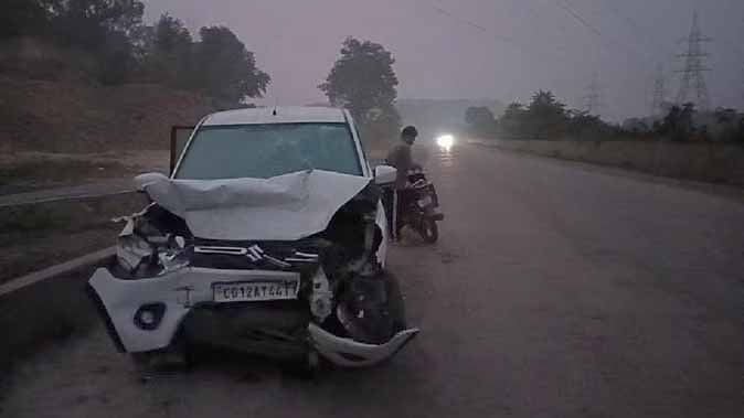 कुर्रे नैला से देवी दर्शन कर लौट रही कार सड़क पर खड़े वाहन से टकराई, पूर्व कांग्रेस पार्षद समेत सात लोग घायल