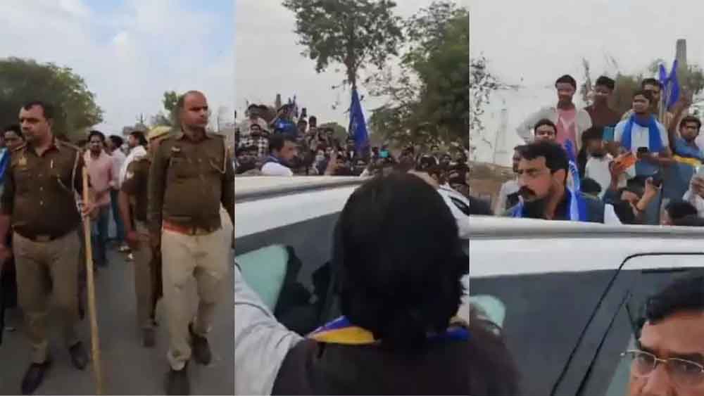 मथुरा में चंद्र शेखर के काफिले पर हुआ हमला, दो बाइक सवारों ने फेंके पत्थर