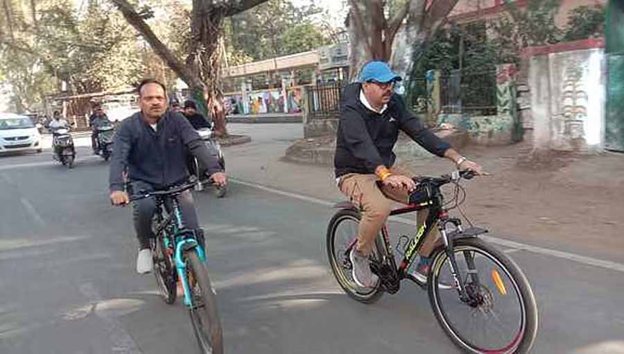 सफाई व्यवस्था का निरीक्षण करने सायकल पर निकले निगम आयुक्त