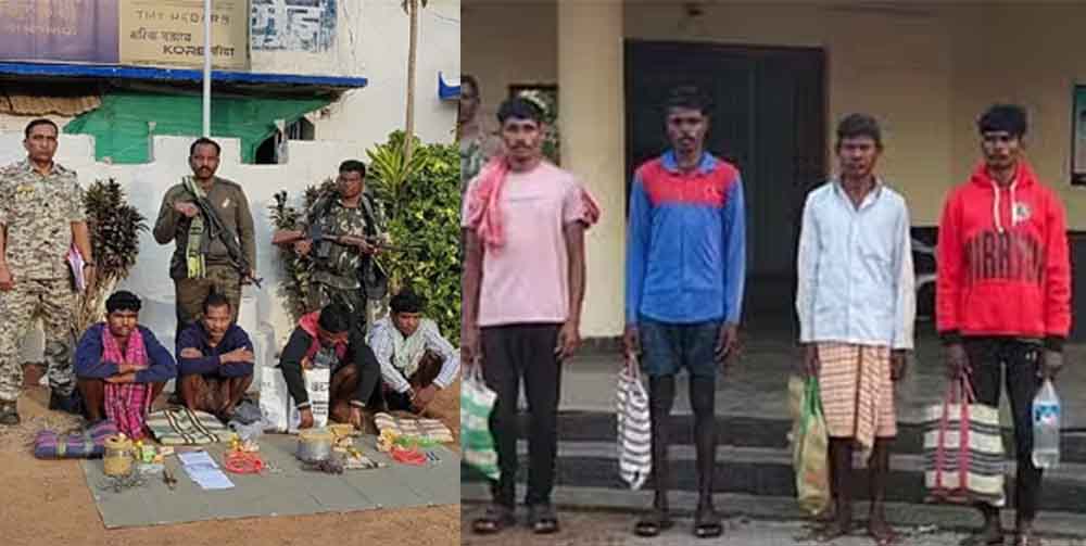रोड ओपनिंग व सुरक्षा व्यवस्था में लगे पुलिस के जवानों ने घेराबंदी कर उन्हें पकड़ा। पूछताछ करने पर अपना नाम नागेश बोड़डूगुल्ला पुत्र लक्षमैया निवासी पीसेपारा कोत्तागुडा, मासा हेमला (35) पुत्र भीमा हेमला निवासी बेलम नेंड्रा, सन्नू ओयाम (35) पुत्र मुइद्र ओयाम निवासी बेलम नेंड्रा और लेमाम छोटू (21) पुत्र सूदरु निवासी पुसबाका बंडागड़ापारा थाना बासागुड़ा होना बताया। पकड़े गए नक्सलियों के पास रखे थैले में एक कुकर बम, एक टिफिन बम, कॉर्डेक्स वायर, बिजली का तार, बैटरी, दवाइयां व नक्सली साहित्य बरामद किया गया। नक्सलियों से उक्त प्रतिबंधित विस्फोटक सामग्री के परिवहन के संबंध में नोटिस जारी कर वैध दस्तावेज मांगा, किसी प्रकार का दस्तावेज नहीं होना बताया। इधर, डीआरजी व नैमेड थाना की संयुक्त कार्रवाई में मुसालूर के जंगल से चार नक्सलियों को विस्फोटक व नक्सली साहित्य के साथ पकड़ा गया। इनमें मोसला आरपीसी जनताना सरकार सदस्य शंकर पुनेम पिता सुकलु पुनेम (25) निवासी स्कूल पारा मोसला, मोसला आरपीसी जनताना सरकार सदस्य आर्थिक शाखा अध्यक्ष बदरू अवलम उर्फ बोडडा पिता सुकलु अवलम उम्र 38 निवासी स्कूल पारा मोसला, दुरधा आरपीसी मिलिशिया प्लाटून ए सेक्शन कमाण्डर सन्नू पोयाम उर्फ संदीप पिता हडमो पोयाम उम्र 35 निवासी पटेलपारा दुरधा व दुरधा आरपीसी जन मिलिशिया सदस्य कमलू हेमला पिता पाण्डु हेमला उम्र 34 निवासी स्कूलपारा दुरधा थाना नैमेड शामिल है। पकड़े गए नक्सलियों के विरुद्ध थाना नैमेड व बासागुड़ा में वैधानिक कार्यवाही कर न्यायिक रिमांड पर मुख्य न्यायिक दंडाधिकारी न्ययालय बीजापुर के समक्ष पेश किया गया है।