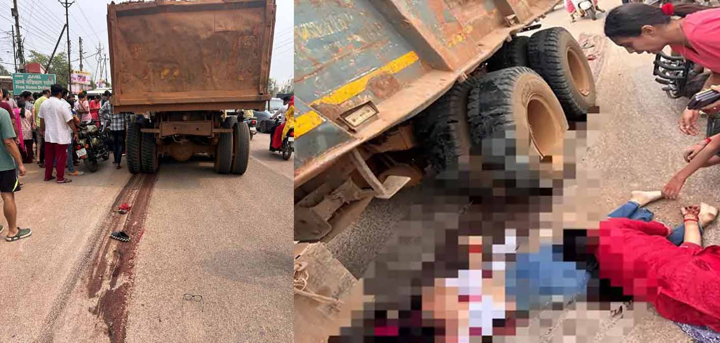 हाइवा की चपेट में आने से स्कूटी सवार युवती की मौत