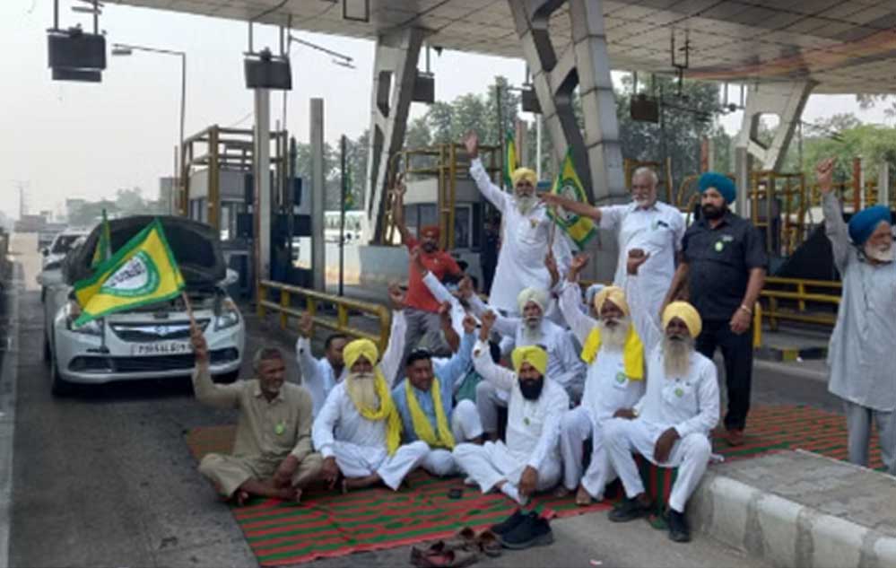 पंजाब में धान की खरीद न होने के विरोध में भाकियू उगराहां ने फ्री करवाए टोल, सरकार के खिलाफ नारेबाजी