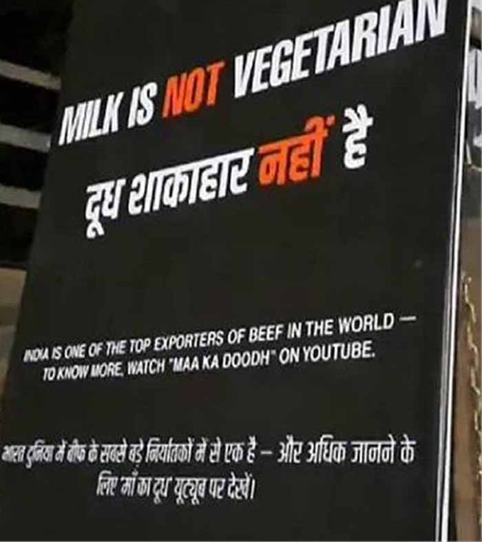शहर के गौरीघाट क्षेत्र में देर रात लगे एक विवादास्पद पोस्टर ने हड़कंप मचा दिया। पोस्टर पर लिखा था “MILK IS NOT VEGETARIAN (दूध शाकाहार नहीं है)” शनिवार रात जबलपुर पुलिस ने तत्काल एक्शन लेते हुए तीन युवकों को पोस्टर चिपकाते हुए पकड़ लिया और करीब 50 से अधिक पोस्टर जब्त कर लिए।