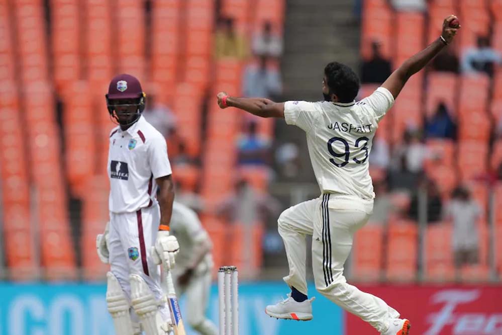 पहले टेस्ट मैच में जसप्रीत बुमराह ने शानदार गेंदबाजी करते हुए इतिहास रच दिया. वेस्टइंडीज की पहली पारी में बुमराह ने घातक स्पेल डालते हुए तीन विकेट हासिल किए. खास बात यह रही कि उन्होंने इनमें से दो बल्लेबाजों को बोल्ड आउट किया. इसी के साथ बुमराह ने 2025 में सबसे ज्यादा बार बल्लेबाजों को बोल्ड करने वाले गेंदबाज का रिकॉर्ड अपने नाम कर लिया.
