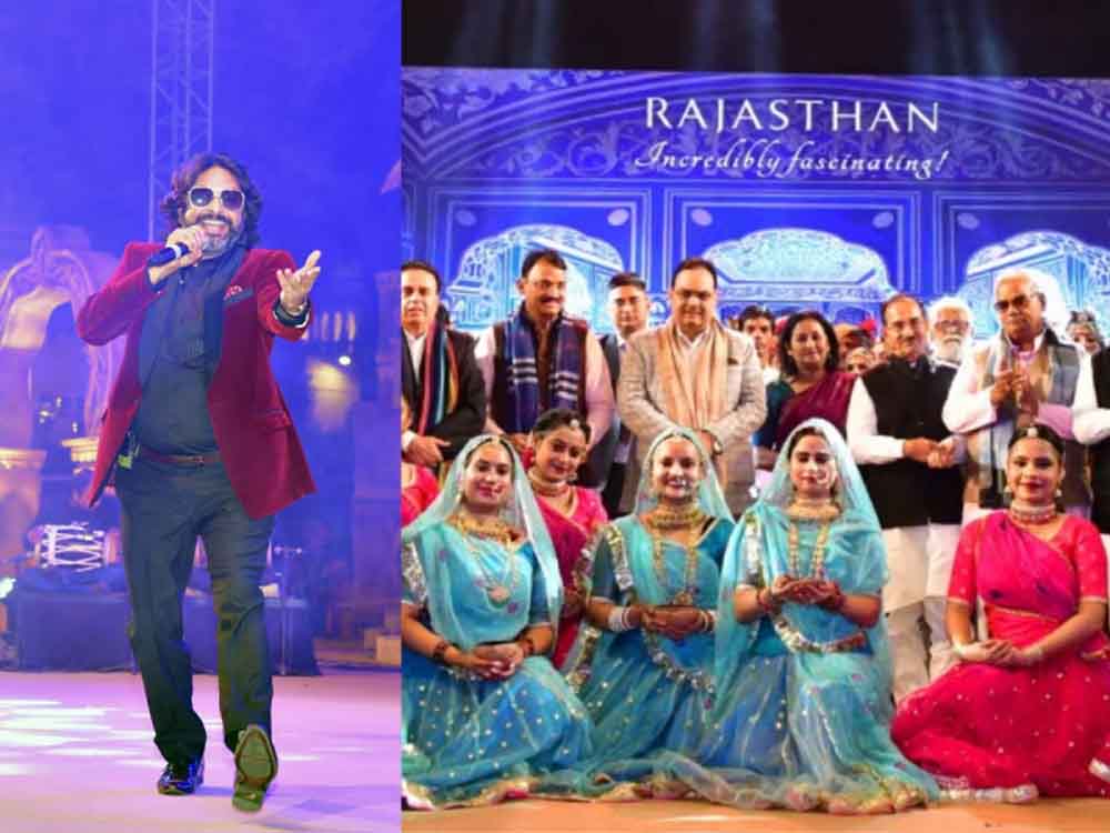 गायन, वादन और नृत्य के सुमधुर सांगीतिक समन्वय के बीच पधारो म्हारे देश की थीम पर बिखरे सुरों से सजी यह निराली शाम खम्मा घणी ओ लाडी सा…पधारो रे सुहानी सा…आदि गानों और दीर्घ स्क्रीन पर दृश्य श्रव्य धुनों के बीच निवेशकों को लुभाती सी नजर आई। राजस्थानी संगीत से समृद्ध धोरां वाले देश राजस्थान में निवेश को प्रोत्साहित करती सांझ में सुरम्य वातावरण और शानदार प्रदर्शन ने हर किसी का मन तो मोहा ही, तालियां भी खूब बटोरी। दीर्घ स्क्रीन्स पर हज़ारों की संख्या में दर्शक-दीर्घा में विराजे जयपुराइट्स, यूथ एवं निवेशक आगन्तुकों ने पुष्कर और पिछोला झील के मनमोहक दृश्य, यूनेस्को की संरक्षित प्रादेशिक धरोहरों, दुर्गों, कुएं-बावड़ियों के शिल्प-स्थापत्य की आभा, प्राकृतिक संसाधनों से भरपूर खनिजों के अजायबघर के नाम से सुविख्यात राजस्थान प्रदेश में वन, वन्य जीवों, अभयारण्यों आदि की छटा, आन -बान और शान की मरुधरा के व्यापक दिग्दर्शन कर हर कोई भाव विभोर हो उठा। उल्लेखनीय है कि प्रदेश सरकार द्वारा राज्य में विकसित राजस्थान की तर्ज पर औद्योगिक निवेश को प्रोत्साहित करने के उद्देश्य से 11 दिसंबर तक तीन दिवसीय राइजिंग राजस्थान ग्लोबल इंवेस्टमेंट समिट का आयोजन किया जा रहा है। समिट में शिरकत करने आए देशी-विदेशी मेहमानों को प्रदेश की समृद्ध संस्कृति, गौरवान्वित विरासत और सभ्यता से रूबरू करवाने की कड़ी में सांस्कृतिक कार्यक्रम आयोजित किए जा रहे हैं। रविन्द्र उपाध्याय ने चक दे इंडिया.. जय हो.. धरती धोरां री..चूड़ी चमके…चिरमी…लगन लगी..घूमर….केसरिया बालम, आवो नी पधारो म्हारे देश…आदि गाने गाकर सबको थिरकने पर मजबूर कर दिया, वहीं गिर्राज धरण के जयकारों के उद्घोष से दर्शकों में जोश भर दिया।