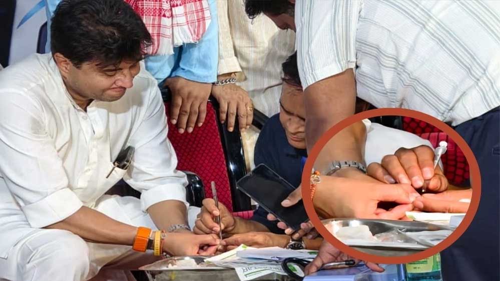 अशोकनगर रेलवे स्टेशन पर मंत्री सिंधिया को मधुमक्खी ने काट लिया, डॉक्टर ने किया प्राथमिक उपचार