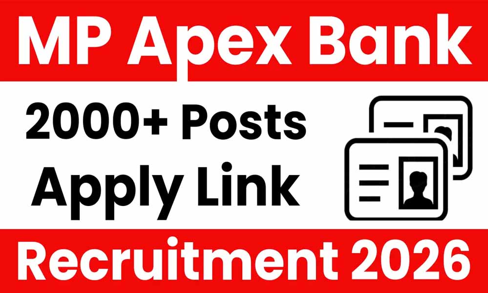 सरकारी बैंक में नौकरी का सपना देख रहे युवाओं के लिए बड़ी खुशखबरी है। मध्य प्रदेश राज्य सहकारी बैंक लिमिटेड (MP Apex Bank) ने भर्ती 2026 का नोटिफिकेशन जारी कर दिया है। इस भर्ती के जरिए प्रदेश के अलग-अलग जिला केंद्रीय सहकारी बैंकों में कुल 2076 पद भरे जाएंगे। खास बात ये है कि इसमें क्लर्क से लेकर ऑफिसर ग्रेड तक के पद शामिल हैं, यानी ग्रेजुएट युवाओं के लिए सुनहरा मौका।