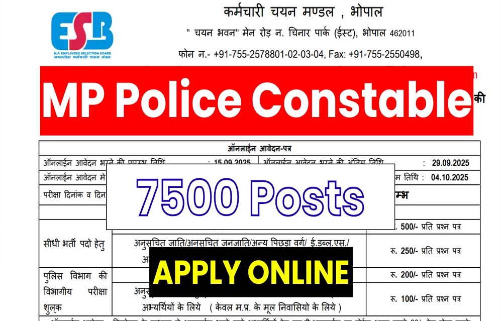 मप्र कर्मचारी चयन मंडल (ESB) गृह विभाग के लिए सूबेदार शीघ्रलेखक (स्टेनोग्राफर) और सहायक उप निरीक्षक (अनुसचिवीय) के 500 पदों पर भर्ती परीक्षा आयोजित कर रहा है। इस तरह की भर्ती आठ साल बाद होने जा रही है।