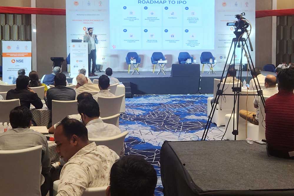 मर्चेंट बैंकर ने एमएसएमई के लिए आईपीओ यात्रा की चरणबद्ध जानकारी दी। साथ ही, बौद्धिक संपदा अधिकार (IPR) विशेषज्ञों ने आईपीआर के पंजीकरण और सुरक्षा पर विस्तृत सत्र आयोजित किया तथा बताया कि यह व्यवसाय के मूल्यांकन और प्रतिस्पर्धात्मकता में कैसे सहायक है।