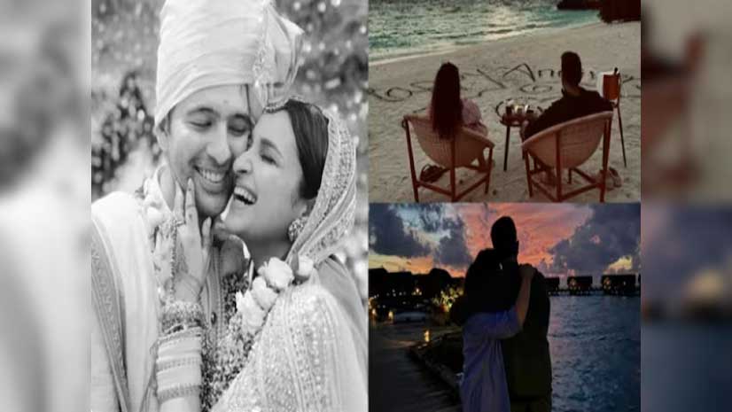 परिणीति ने इंस्टाग्राम पर मालदीव में राघव के साथ अपनी शादी की पहली सालगिरह के जश्न की कई तस्वी।रें शेयर की। फोटोज में कपल मालदीव में समुद्र के किनारे कुर्सियों पर आराम करते हुए और सनसेट एंजॉय करते दिख रहे हैं। इन फोटोज के साथ परिणीति चोपड़ा ने पति राघव के लिए एक दिल छू जाने वाला पोस्ट भी शेयर किया है।