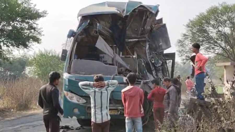 रायपुर से प्रयागराज जा रही यात्री बस खड़े कोयले से भरे ट्रेलर से टकराई, एक की मौत, 23 घायल