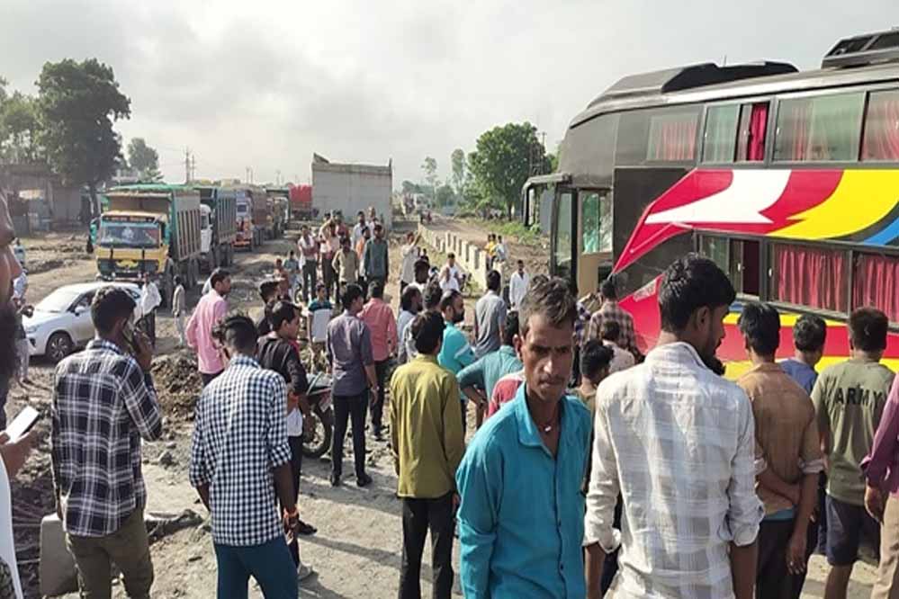 इंदौर-बैतूल हाईवे पर डंपर फंसने से रास्ता जाम, रातभर खड़ी रहीं बसें और वाहन
