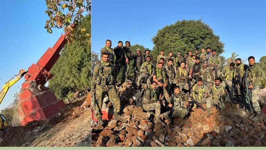 इंटरस्टेट रेड कॉरिडोर में माओवादियों के स्मारक को सुरक्षा बल के जवानों किया नेस्तनाबूत