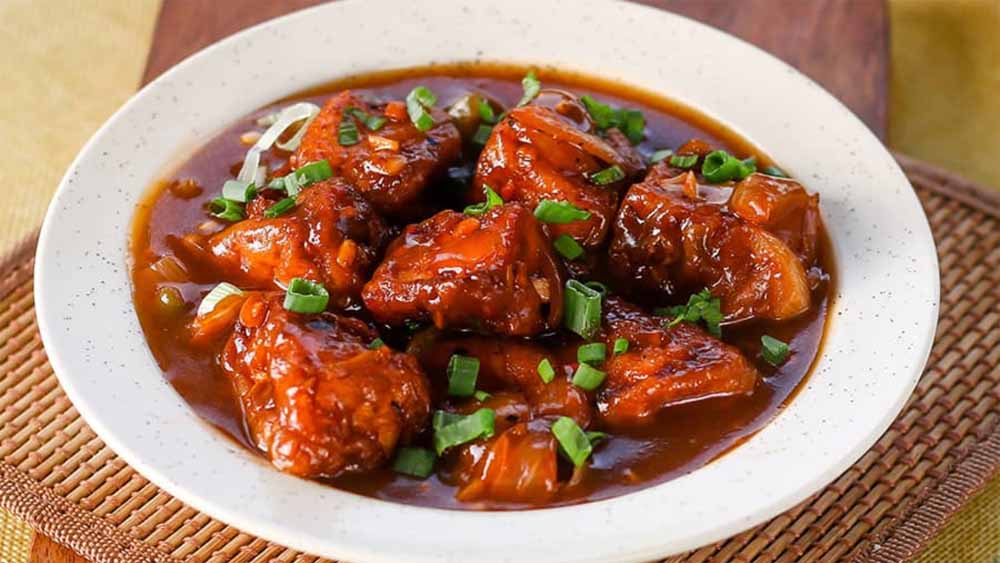 सॉस गाढ़ा तैयार होने पर तले हुए पनीर के क्यूब्स को तुरंत डालकर हल्के हाथों से मिलाएं, ताकि सॉस सभी क्यूब्स पर लग जाए। ऊपर से ताजी धनिया पत्ती और हरे प्याज के हरे भाग से गार्निश करें।