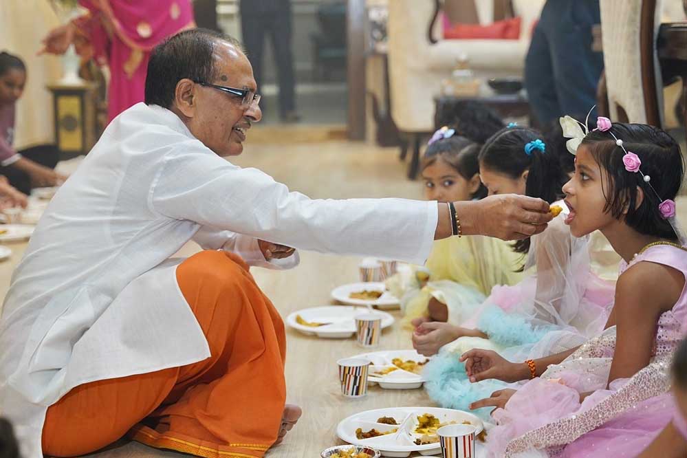 केंद्रीय कृषि मंत्री शिवराज सिंह चौहान ने आवास पर कन्या भोज का आयोजन किया