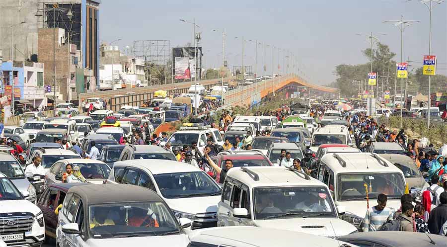 प्रयागराज में अब भी 10 से 25 किलोमीटर लंबा जाम , श्रद्धालुओं की हालत खराब