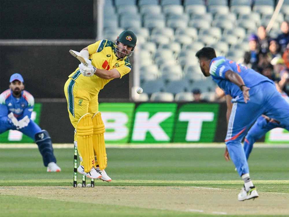 मोहम्मद सिराज ने ट्रैविस हेड को 29 रनों के निजी स्कोर पर चलता किया। 6 चौके इस पारी में ट्रैविस हेड ने जड़े। इंटरनेशनल क्रिकेट में मोहम्मद सिराज ने 19 पारियों में 8वीं बार ट्रैविस हेड को आउट किया है। हालांकि, स्ट्राइक रेट ट्रैविस हेड का सिराज के खिलाफ दमदार रहा है। इस सीरीज में ट्रैविस हेड का बल्ला नहीं चला है, क्योंकि पहले मैच में 8 रन उनके बल्ले से आए थे और दूसरे मैच में 28 रन पर उनका विकेट गिरा था। इस मैच में 29 रन वे बना सके। हालांकि, ऑस्ट्रेलिया ने सीरीज को जीत लिया है।