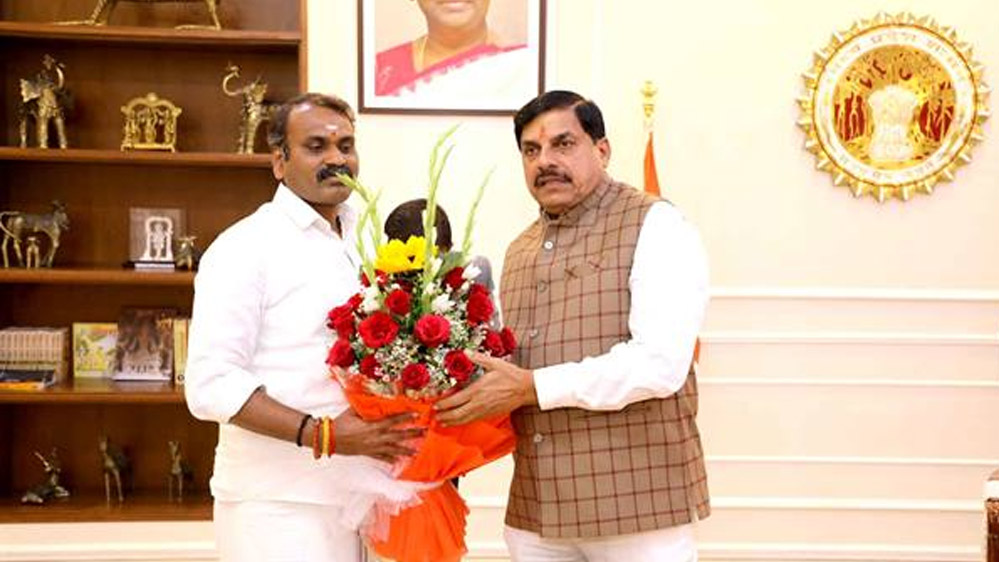 मुख्यमंत्री डॉ. मोहन यादव से शुक्रवार की शाम समत्व भवन (मुख्यमंत्री निवास) में केन्द्रीय सूचना एवं प्रसारण और संसदीय कार्य राज्य मंत्री डॉ. एल. मुरुगन और केंद्रीय सामाजिक न्याय तथा अधिकारिता राज्यमंत्री रामदास आठवले ने भेंट की। मुख्यमंत्री डॉ. यादव ने डॉ. मुरुगन एवं आठवले का स्वागत किया।