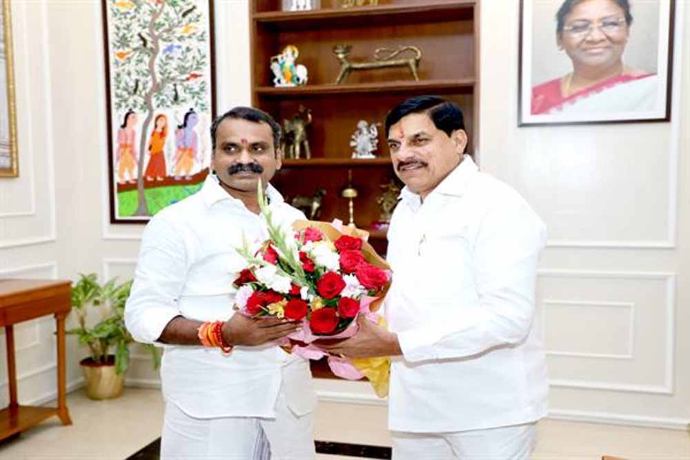 मुख्यमंत्री डॉ. यादव से केंद्रीय सूचना एवं प्रसारण राज्यमंत्री डॉ. मुरुगन ने की सौजन्य भेंट